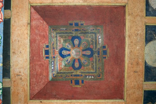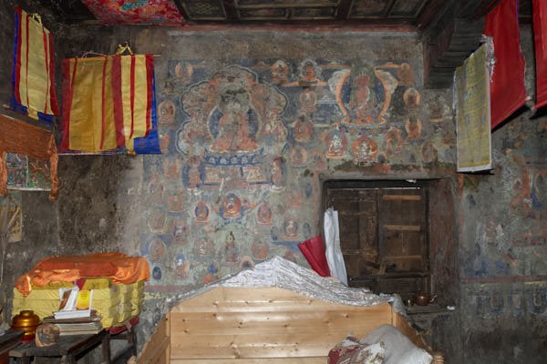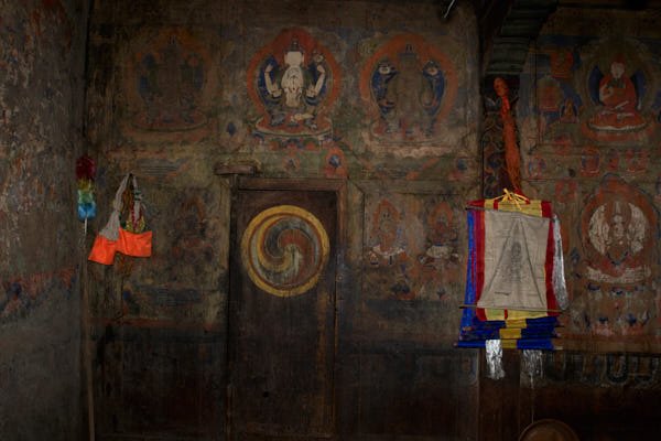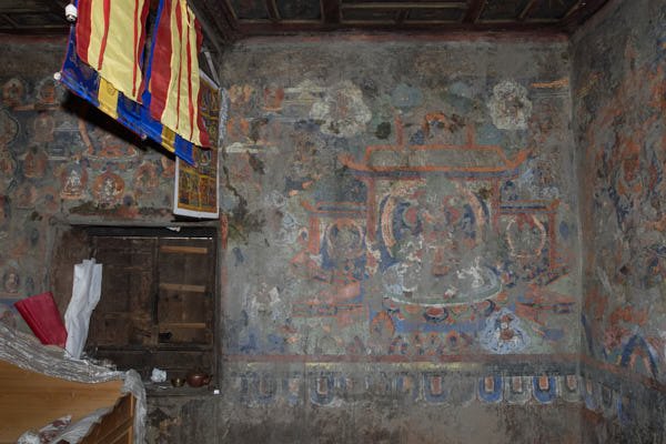 The chapel is located in the third floor of Mr Dendrup’s house in the village of Wayao, in the Sichuan's region. The restoration project was part of the training program sponsored by the Kham Aid Foundation, supported by Winrock International, Millepede Foundation and private donors and carried out in collaboration with John Sanday Associates. A local team composed by 11 trainees carried out the preservation of the wall paintings. The local team received guidance from Luigi Fieni and 5 members of the Wall Painting Conservation Team of Mustang, Nepal.