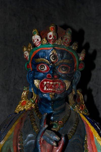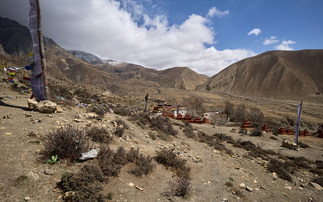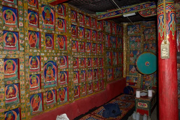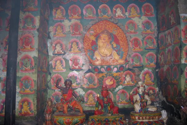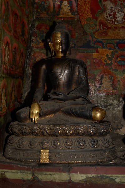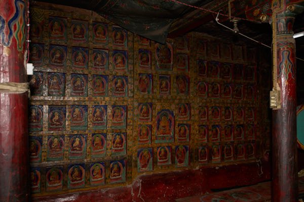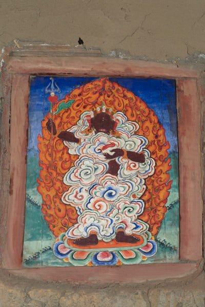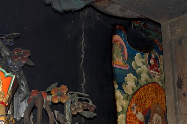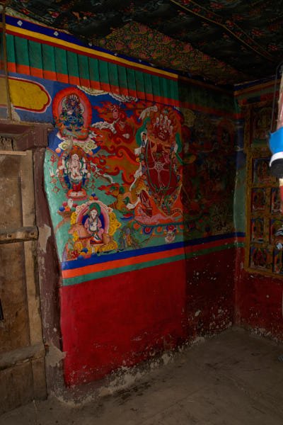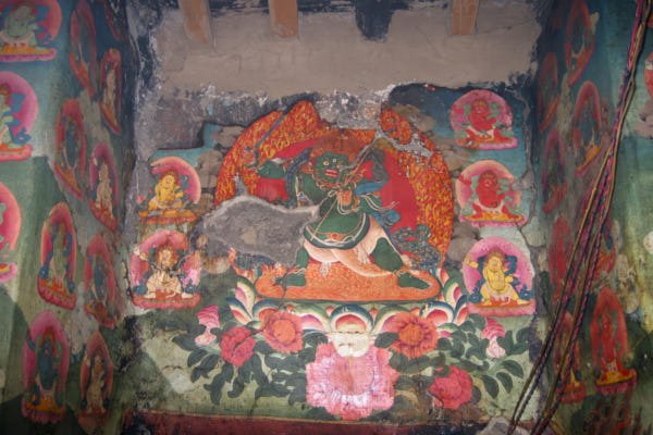 This monastery is well-known in Mustang for its mythical origins. Tradition has it that it was built precisely where the heart of a slaughtered demon fell, after a fight against Guru Rinpoche during his travel towards Tibet. The monastery contains a wide collection of ancient statues, wall paintings as well as painted and carved slates. Although it is considered Mustang’s most ancient monastery, most of the artefacts and the wall paintings could be dated only several centuries after the foundation of the monastery, which took place traditionally around the 8th century.