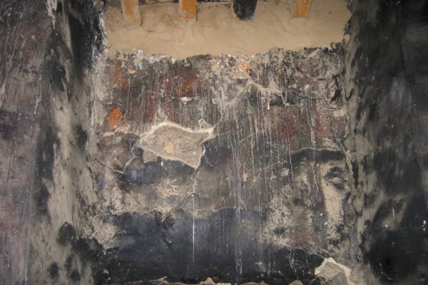 The soot and the thick coatings of varnish were removed by long applications of cotton compresses soaked in organic chemicals on the surface to be cleaned. When the aged varnish and the soot were softened enough they were cleaned off using cotton swabs soaked in the same organic chemicals. In the areas where the thickness of the varnish was not too thick, its removal was carried out through the use of Japanese tissue paper cotton swabs immersed in the same chemical. During the cleaning process it became clear that the pictorial cycle was not the original one for, while checking the cracks and the lacunae, two more finely painted renders were found beneath. Unfortunately, it is impossible to estimate how much is left of those older paintings and which is their state of preservation.