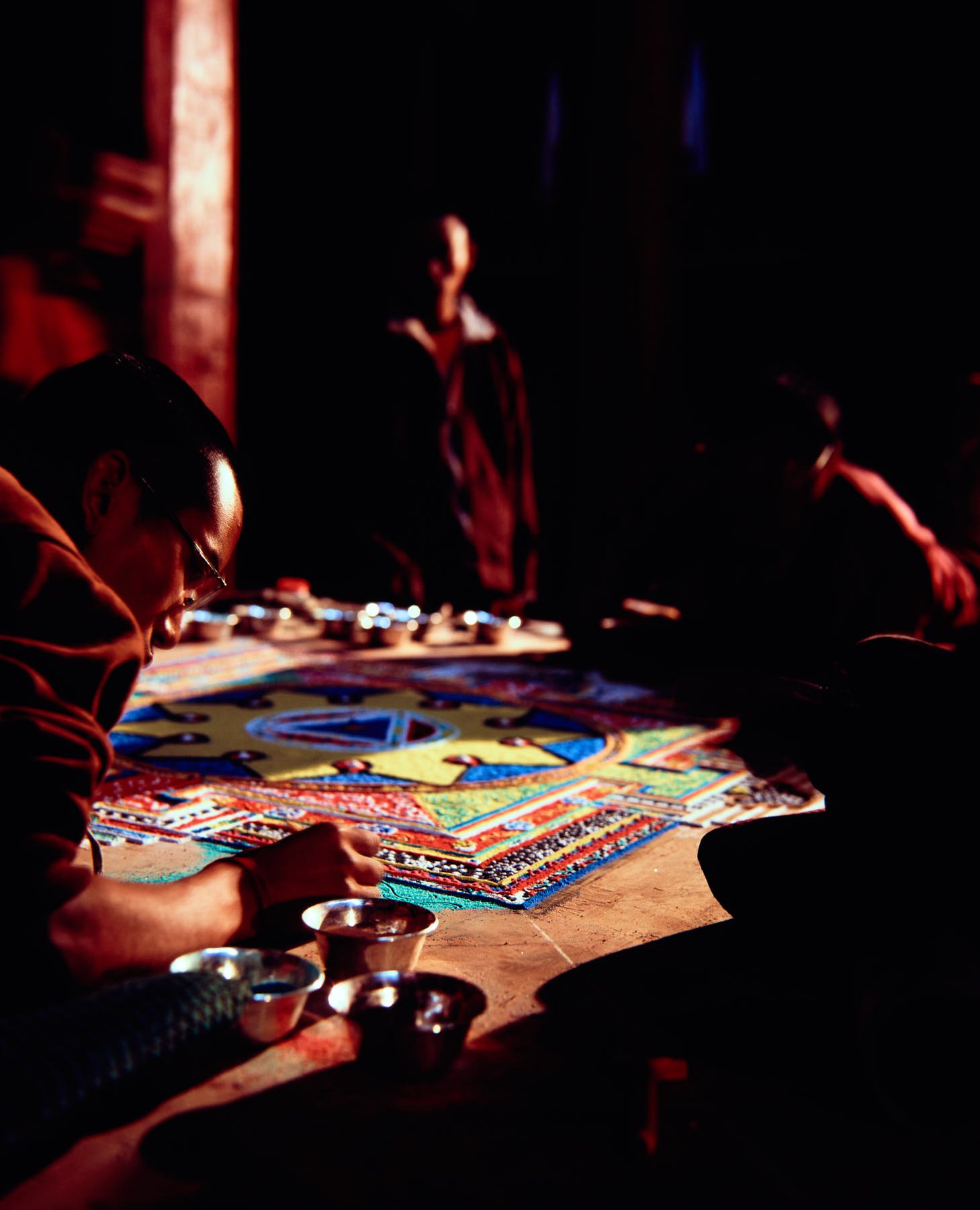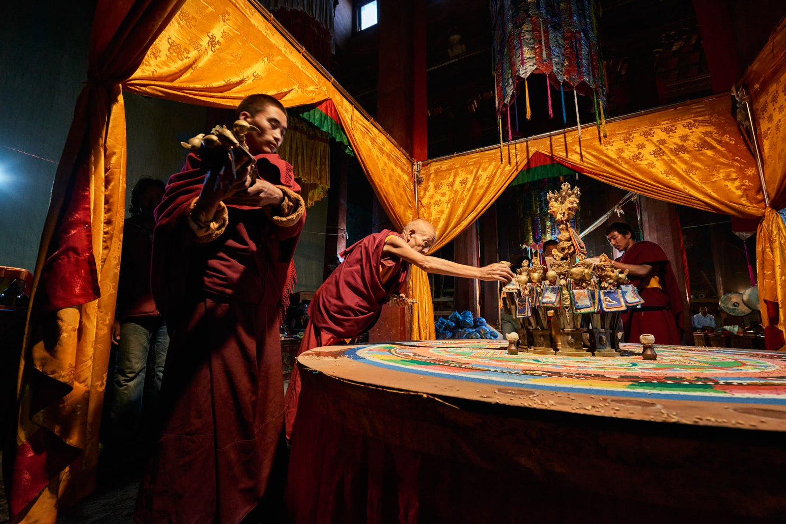 After photographing the same sand mandala ritual for twenty years, I have come to realize that we are the very vessels of the obstacles Vajrakilaya seeks to destroy. This internal battle feels ancient, perhaps intrinsic to our existence. It makes me wonder: is this sand palace merely a map of the cosmos, or is it a tool left by the enlightened to help us tame our own demons? The mandala depicts a universe of forces, but the struggle it resolves is distinctively human. In the end, I suspect the mandala is not a window into the heavens, but a mirror held up to ourselves.