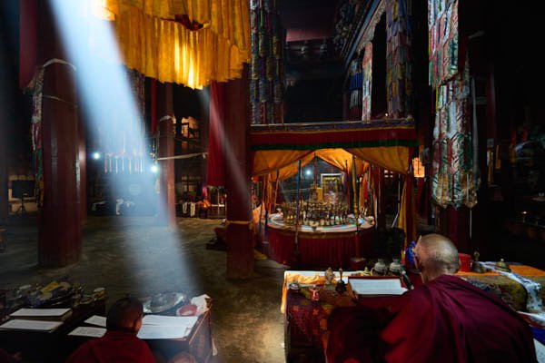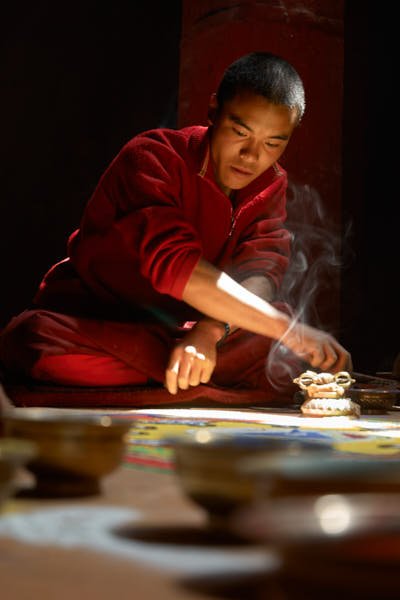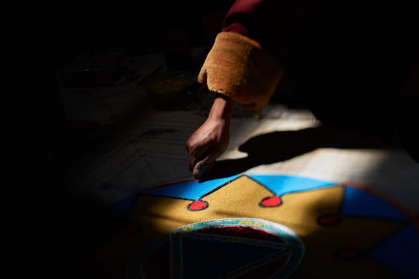 During the ceremony, skilled Buddhist monks meticulously construct a vibrant and intricate mandala using colored sand. This process is not merely an artistic endeavor; it is a spiritual practice that embodies the impermanence of all phenomena. The monks, with deep concentration and reverence, create a geometrically precise representation of the celestial palace of Vajrakilaya.
