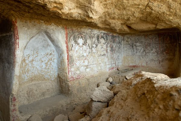 Looters have raided the caves over the centuries, cutting valuable artwork from the ancient texts. In addition, religious pilgrims have damaged the cave walls to collect souvenirs.