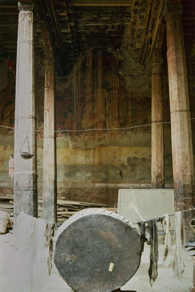In some cases specific supports had to be assembled on site so as to prop up the wall paintings during the re-adhesion procedure. In other cases, to consolidate a wall at risk of collapse, some detachments of wall paintings (stacco) were carried out. During this process, additional old paintings were found inside a portion of a recently built wall. Unfortunately, the new wall could not be dismantled and so the ‘staccos’ were mounted on a mobile support and placed in an adjacent museum to be.