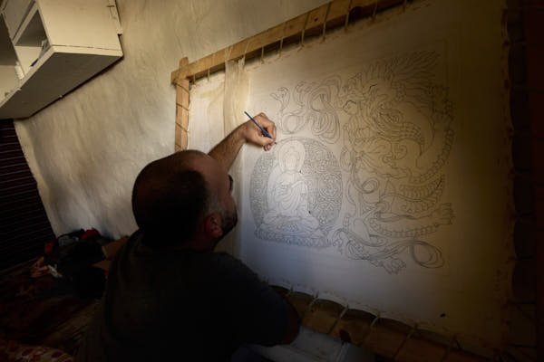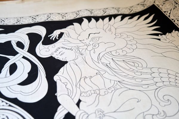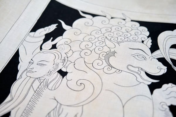 In 2008, my journey into the world of Tibetan art on canvas began when Mukti Singh Thapa, a celebrated Nepalese traditional thangka painter, joined the conservation project I was leading in the beautiful Mustang region of Nepal. Under his guidance, I embarked on the art of painting and continued honing my skills during the winters I spent living in Nepal.