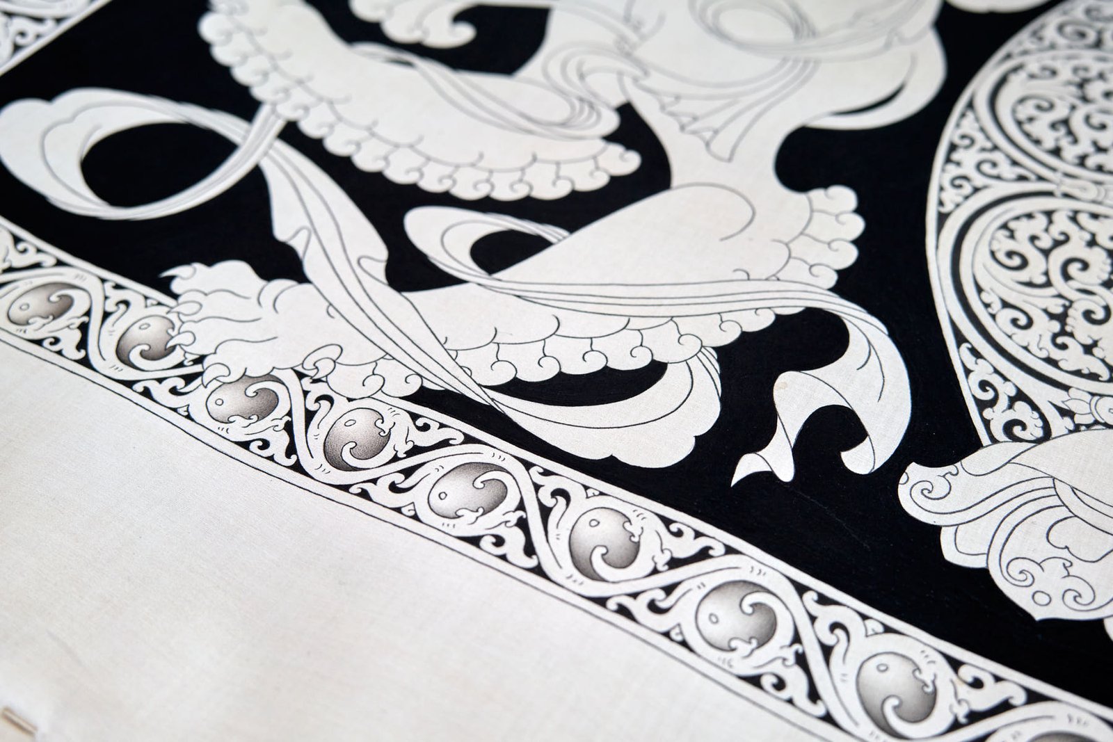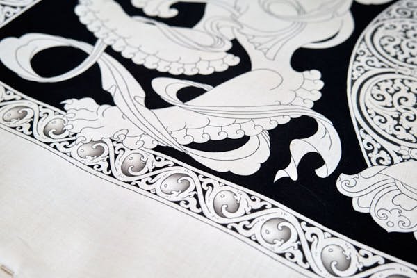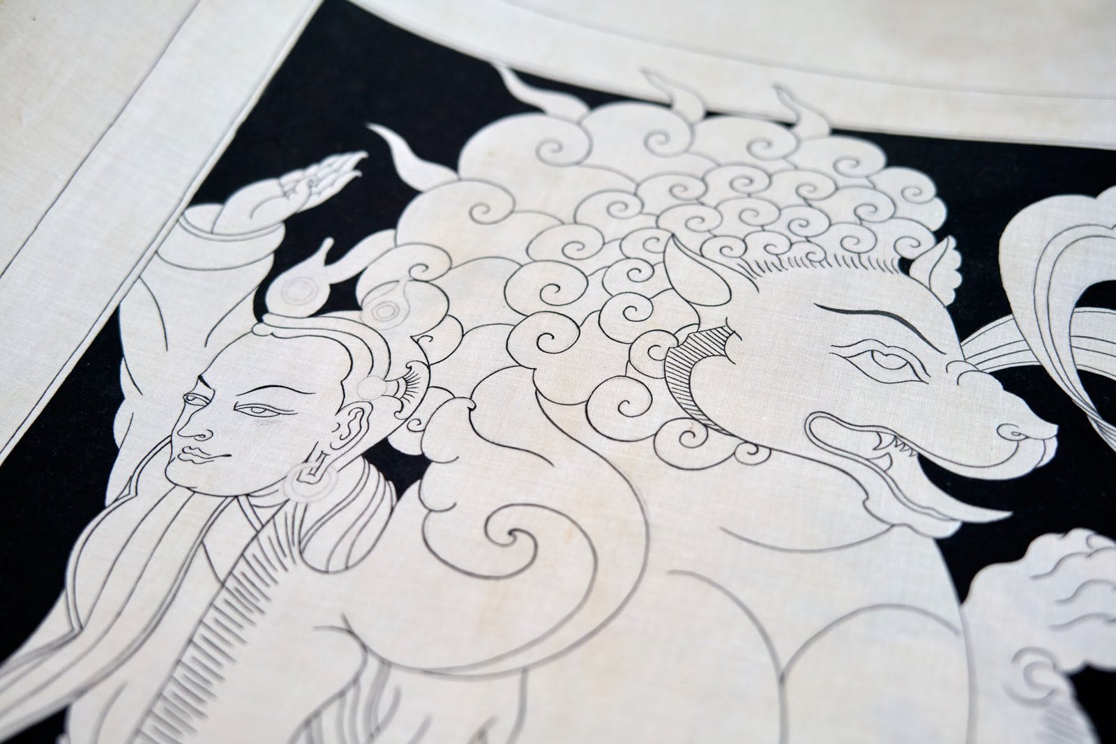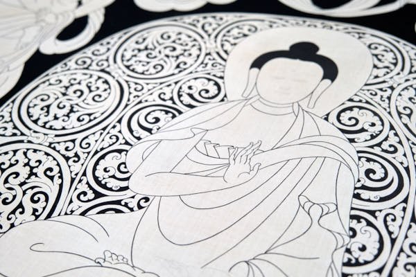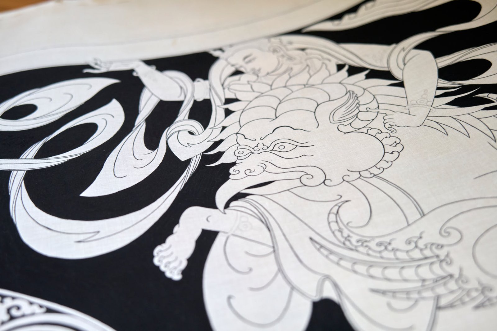 During my time in Mustang, I delved into the creation of a captivating series of black and white thangkas, drawing inspiration from the profound essence of the 5 Tathagata Buddhas. The spark for this artistic endeavor ignited while working on stunning XV-century paintings within the sacred walls of Tubchen Monastery, a place where my dedication had taken root. These awe-inspiring masterpieces served as my muse, guiding me to craft my unique designs and layouts.