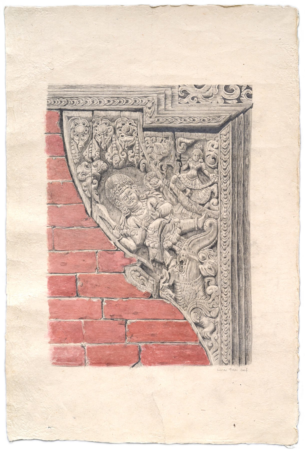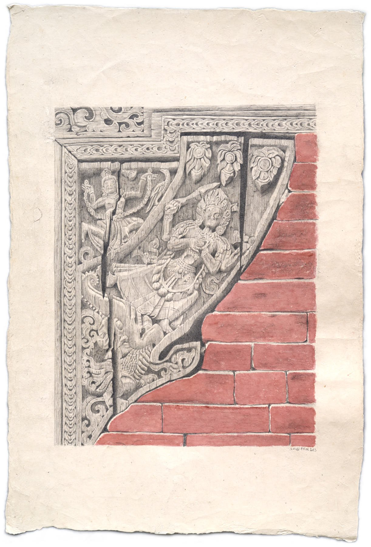 In the ancient courtyards of the Kathmandu Valley, history is carved into every strut and timber. This collection is my visual ode to the master woodcarvers of the Newari civilization. Using the precision of archival ink fineliners and the organic fluidity of pencil and watercolors, I aim to translate the texture of aged wood onto paper.
