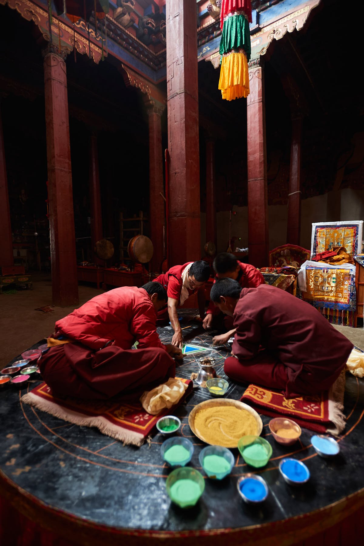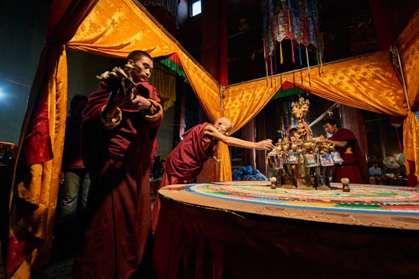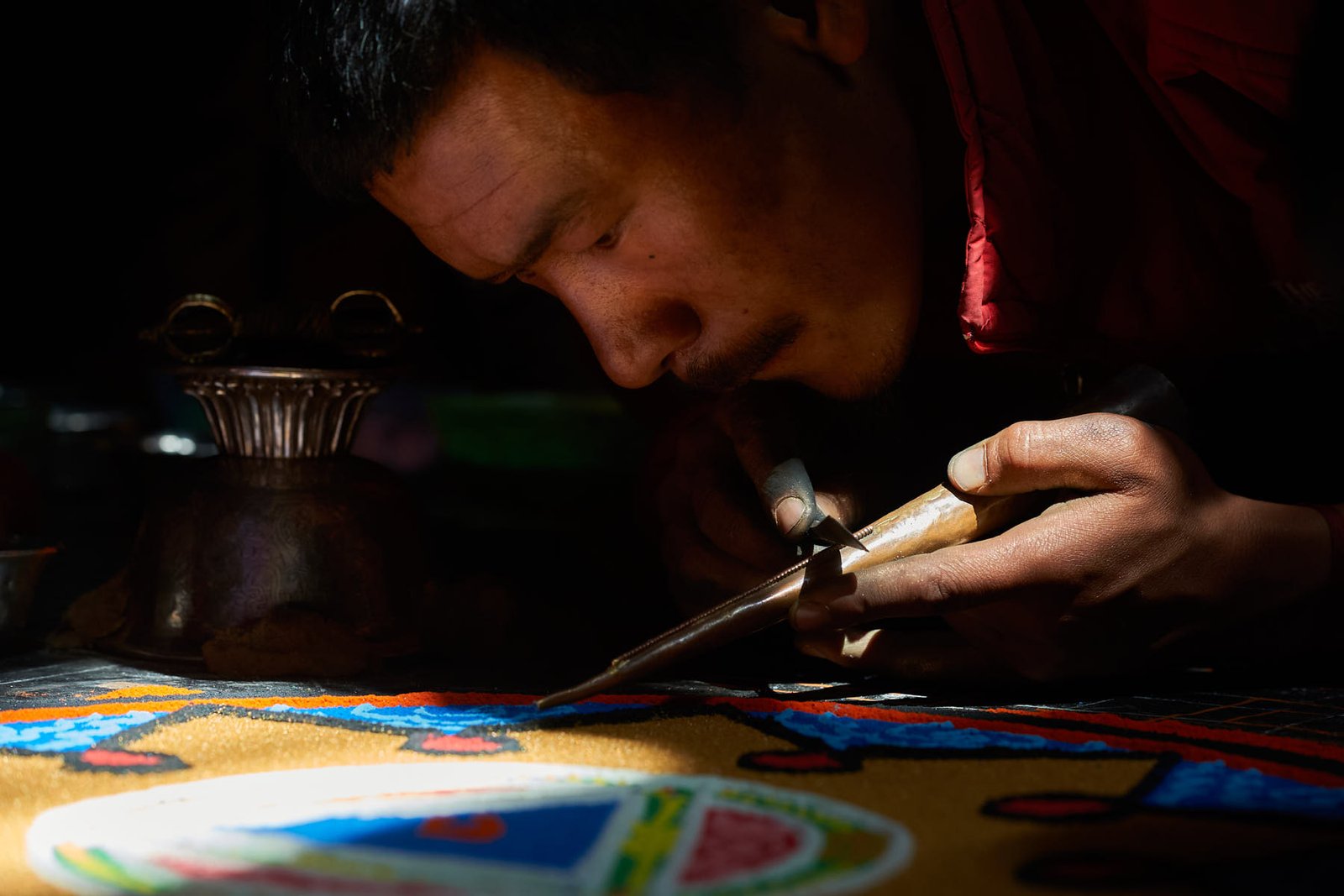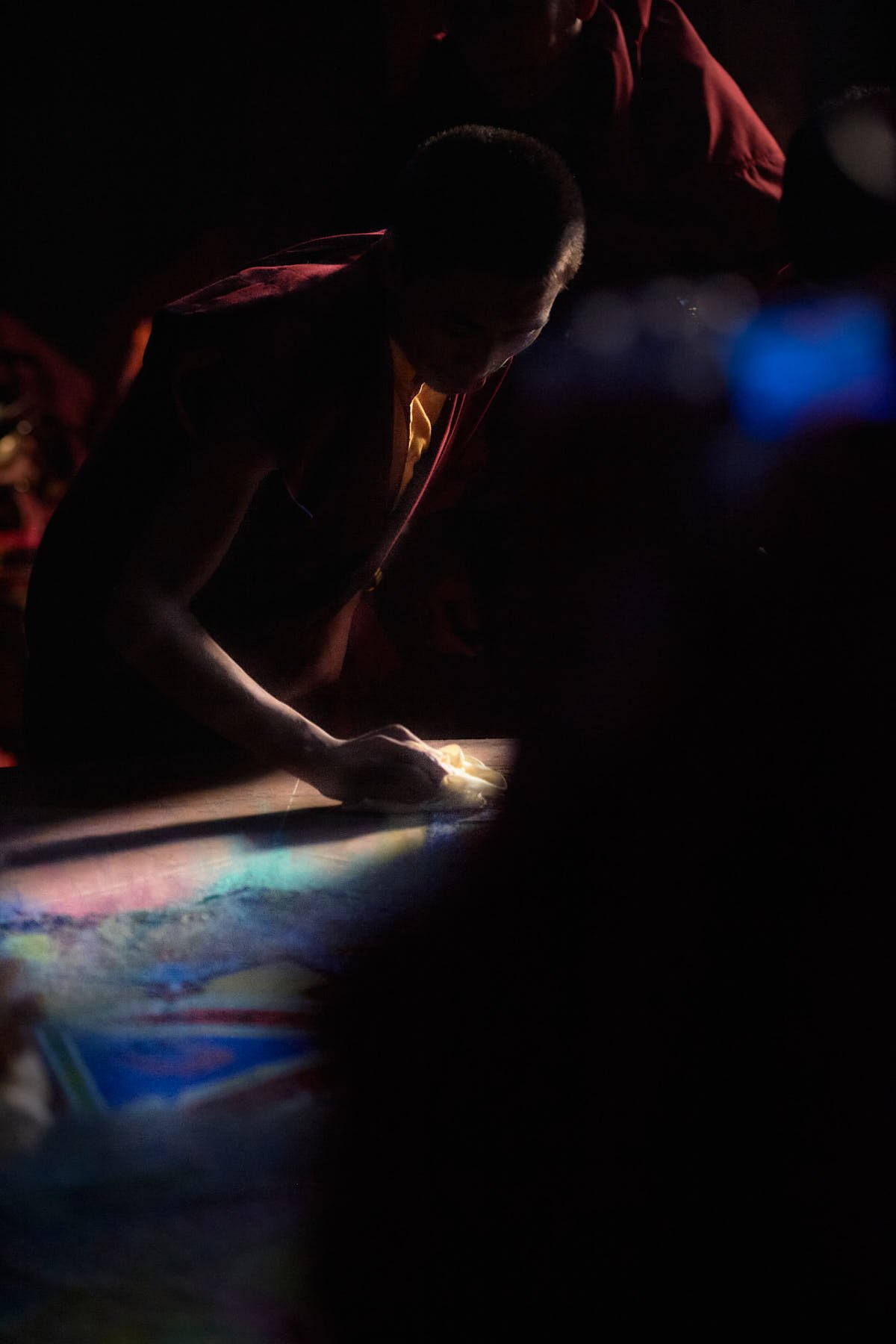After photographing the same sand mandala ritual for twenty years, I have come to realize that we are the very vessels of the obstacles Vajrakilaya seeks to destroy. This internal battle feels ancient, perhaps intrinsic to our existence. It makes me wonder: is this sand palace merely a map of the cosmos, or is it a tool left by the enlightened to help us tame our own demons? The mandala depicts a universe of forces, but the struggle it resolves is distinctively human. In the end, I suspect the mandala is not a window into the heavens, but a mirror held up to ourselves.