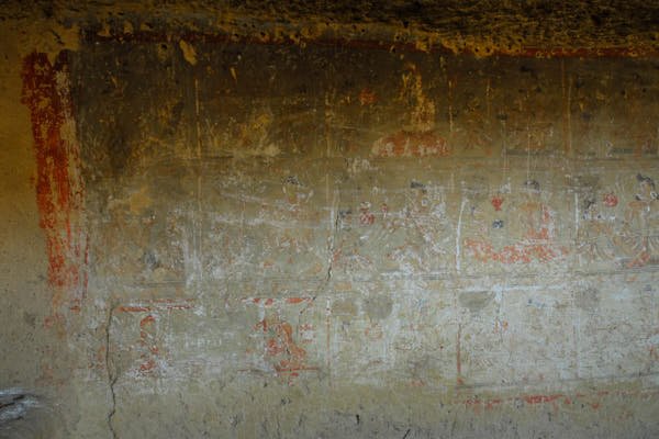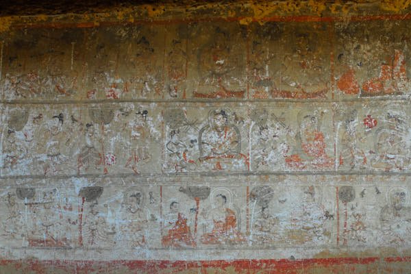 Looters have raided the caves over the centuries, cutting valuable artwork from the ancient texts. In addition, religious pilgrims have damaged the cave walls to collect souvenirs.